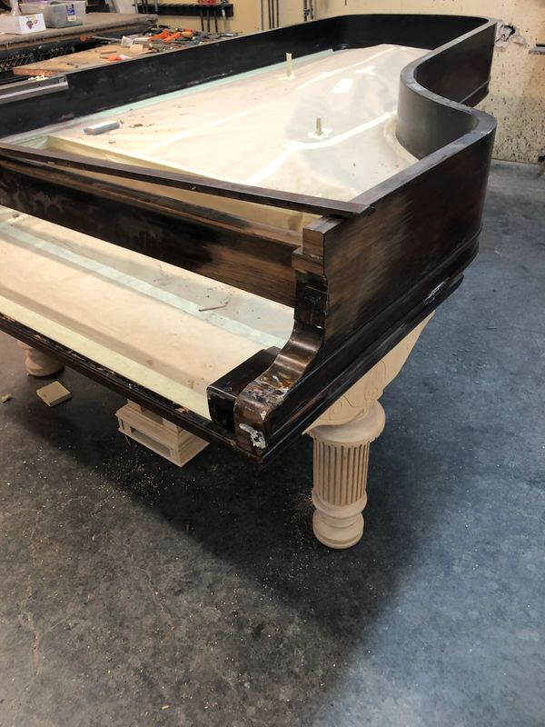 Every restoration begins with a thorough disassembly and detailed inspection of each component by evaluating every part with care, prioritizing the preservation of original materials. Wood components are only replaced when absolutely necessary, allowing us to maintain the authenticity and character of the piano.